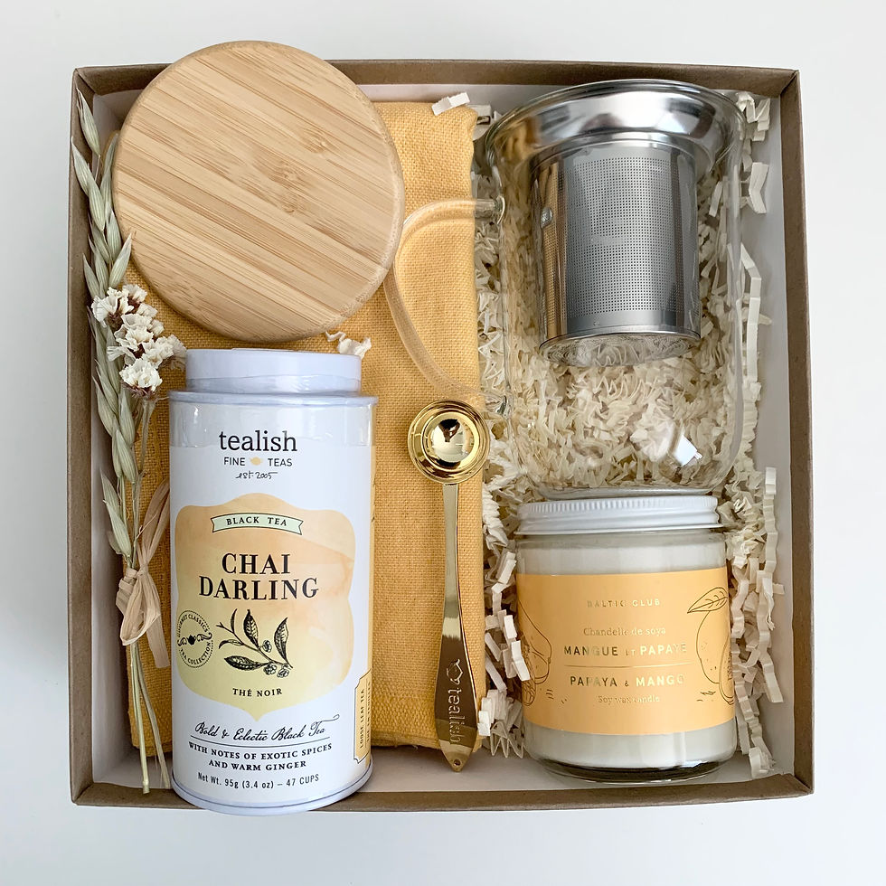 We are always adding new gifts and curated gift boxes filled with items proudly sourced from Canadian small businesses. All boxes within our curated collection below are made from 100% recycled materials. Our clients can request a wood gift box or another type of gift box that suits their aesthetic, prior to making their purchase. If you have a gift in mind but don't see it below, get in touch with us and we can make it happen.